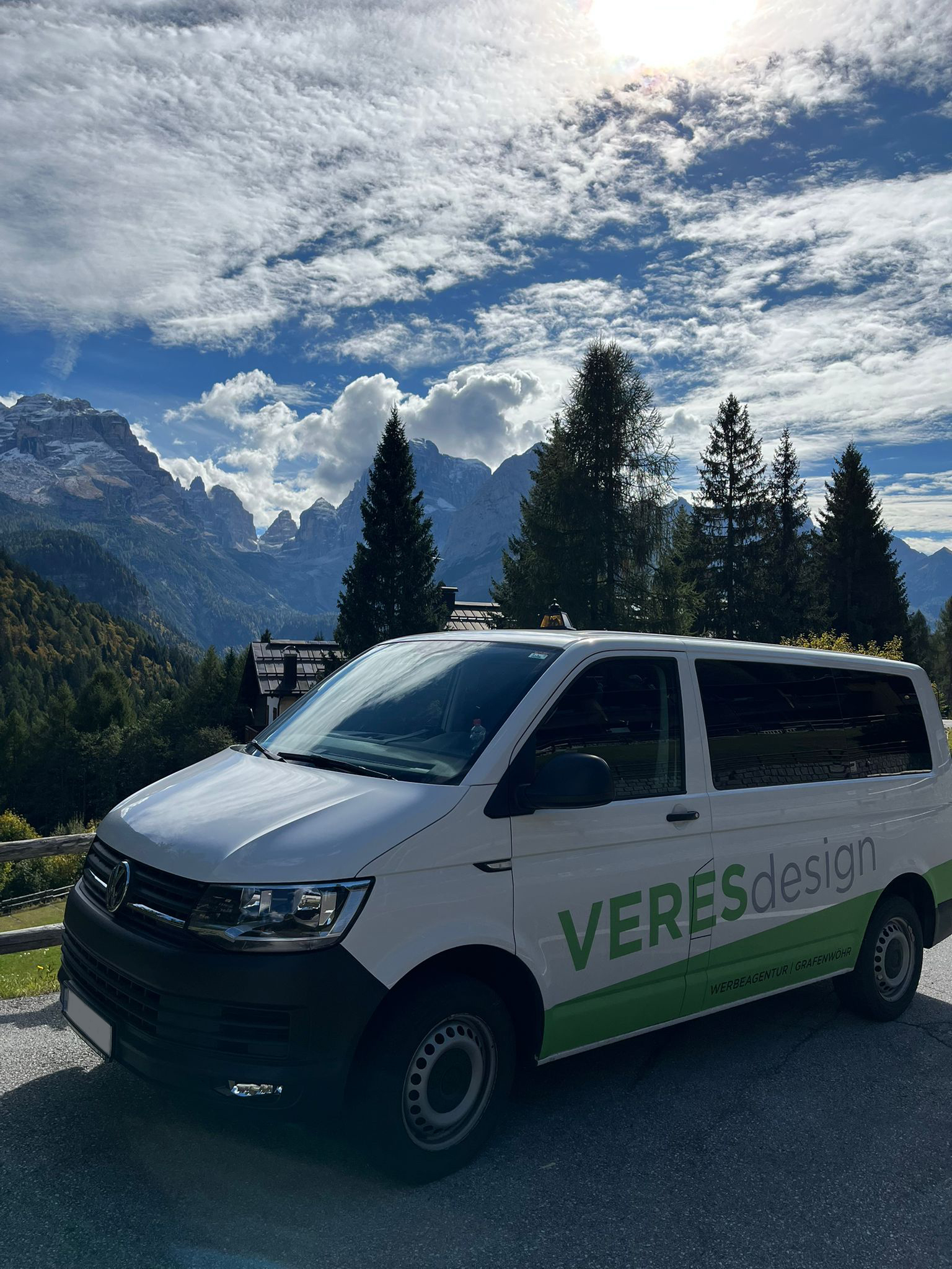 Ein echter VERESdesign-Fan hat uns sein Auto als Werbefläche zur Verfügung gestellt – und ist direkt nach dem Bekleben Richtung Südtirol gestartet. 🇮🇹✨