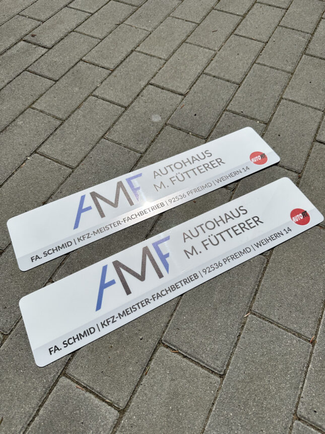 Zum Start gab es natürlich unendlich viel zu tun, der erste Schritt war jedoch ein passendes Logo zu finden um dies dann überall in Szene zu setzen. Wir entwickelten ein Signet aus den Buchstaben „AMF“ mit dem Zusatz „Autohaus M. Fütterer“.