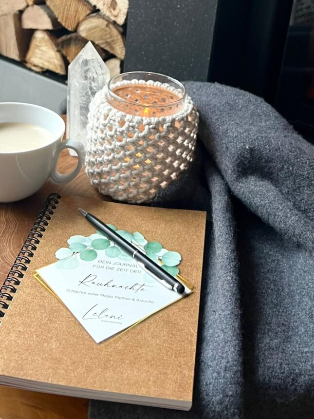 Es folgten Etiketten für die handgemachten Edelsteinkerzen und im November 2023 durften wir noch ein komplettes Rauhnachtjournal mit 60 Seiten gestalten. Alle Produkte für Lelani wurden auf Kraftpapier oder mit Kraftpapieroptik gestaltet und mit schönen Elementen und Schriftarten ergänzt.