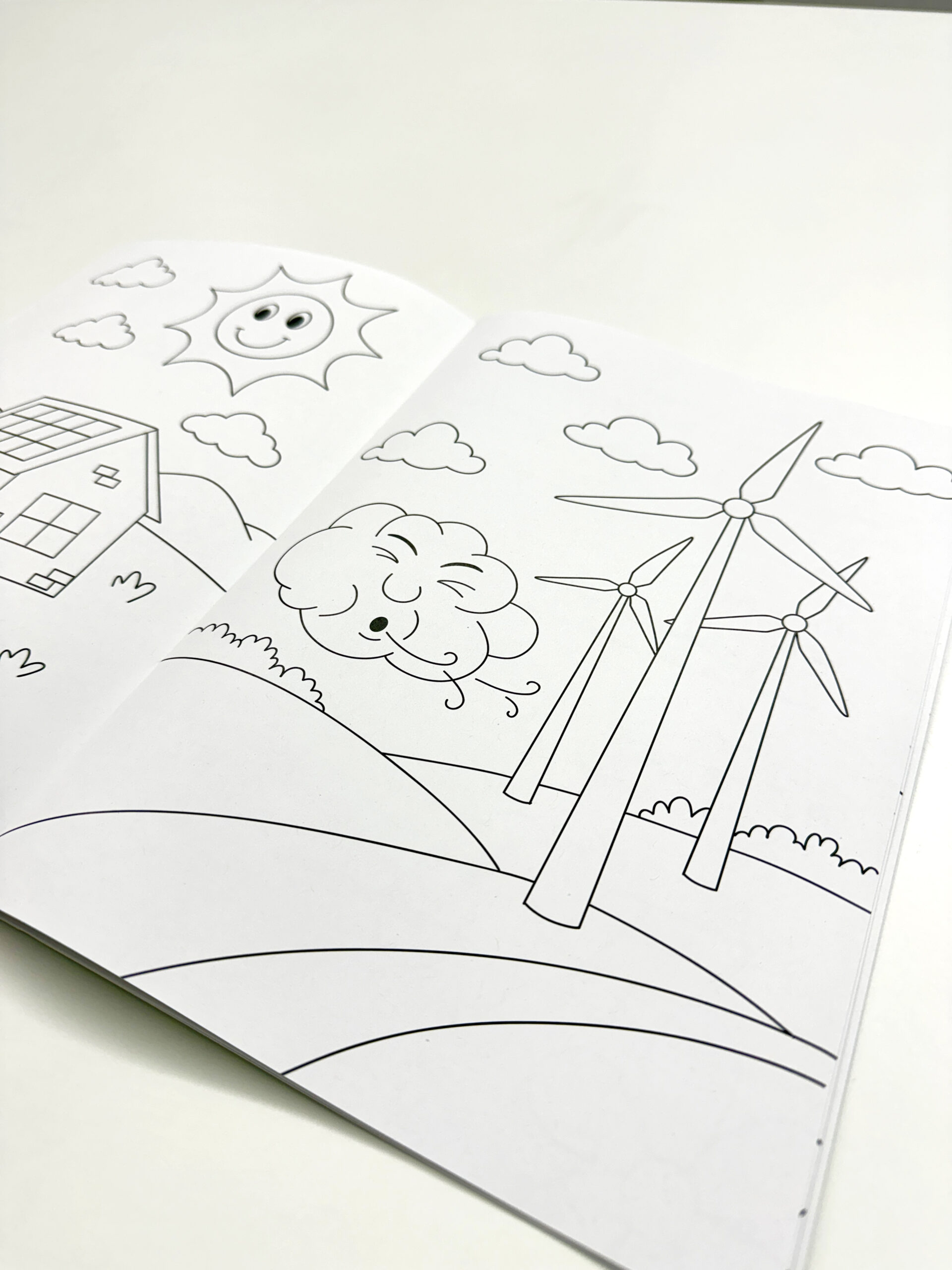 zwei liebevoll illustrierte Malbücher, die Kindern auf spielerische Weise die Welt der erneuerbaren Energien näherbringen.