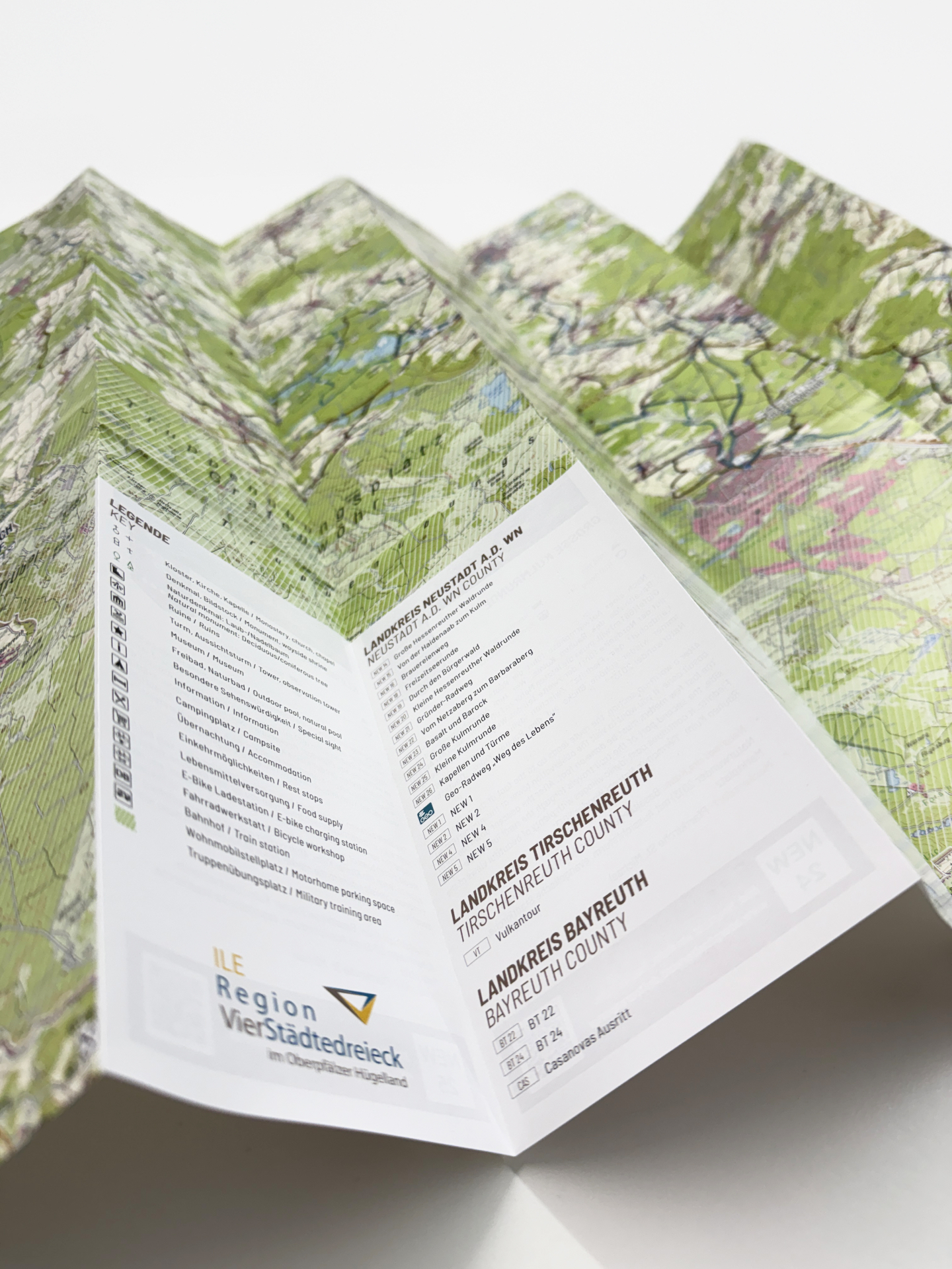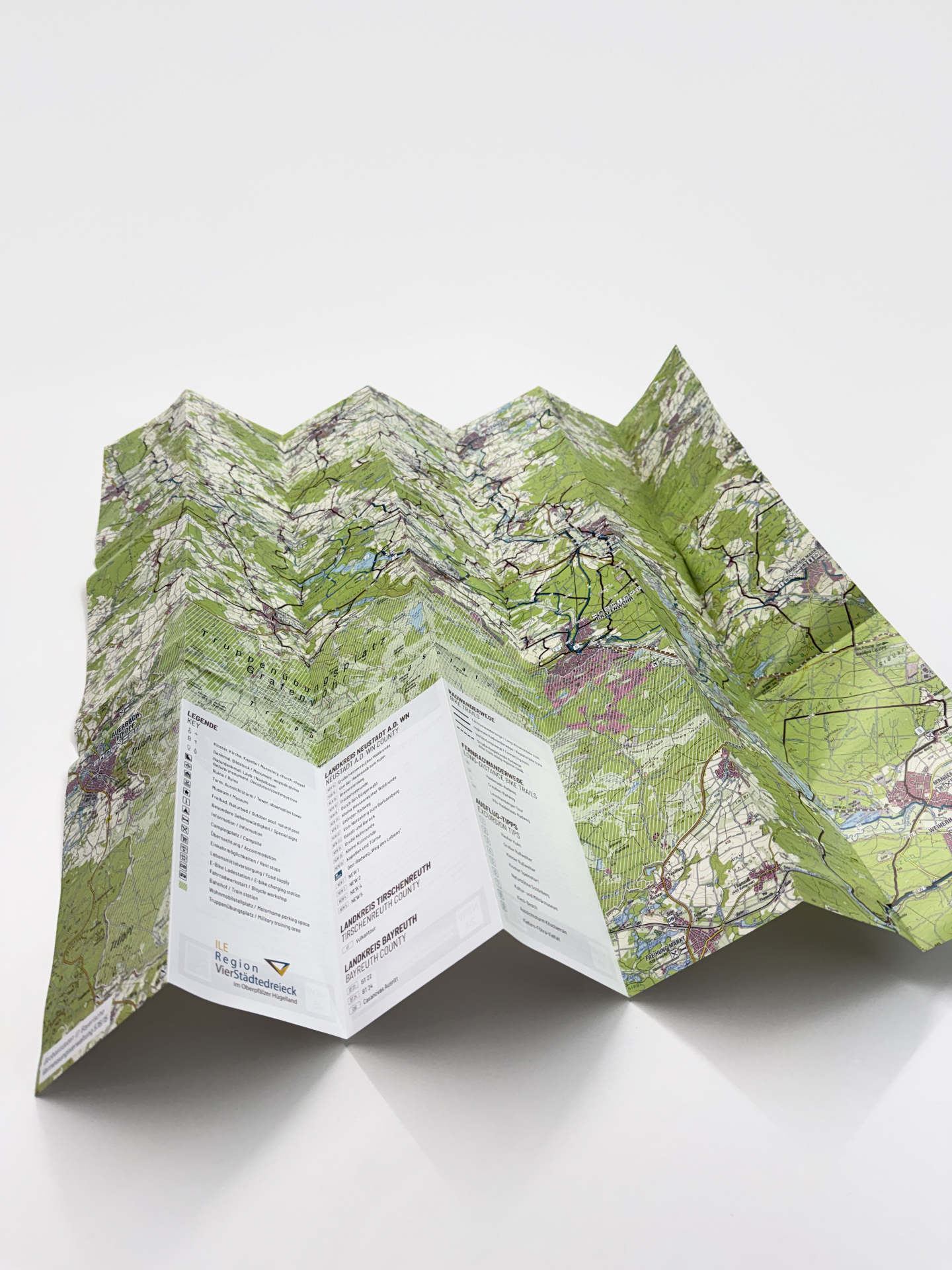 Für die ILE Region VierStädtedreieck durften wir die komplette Überarbeitung der Radkarte für das Oberpfälzer Hügelland übernehmen – von frischen Inhalten und neuen Bildern bis hin zu neuem Kartenmaterial.